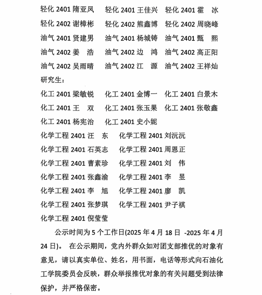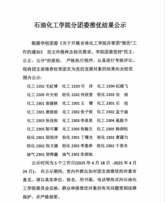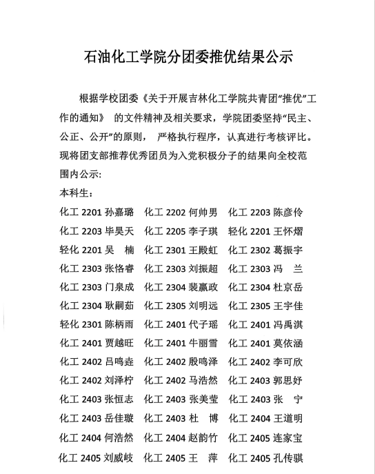 石油化工学院分团委推优结果公示