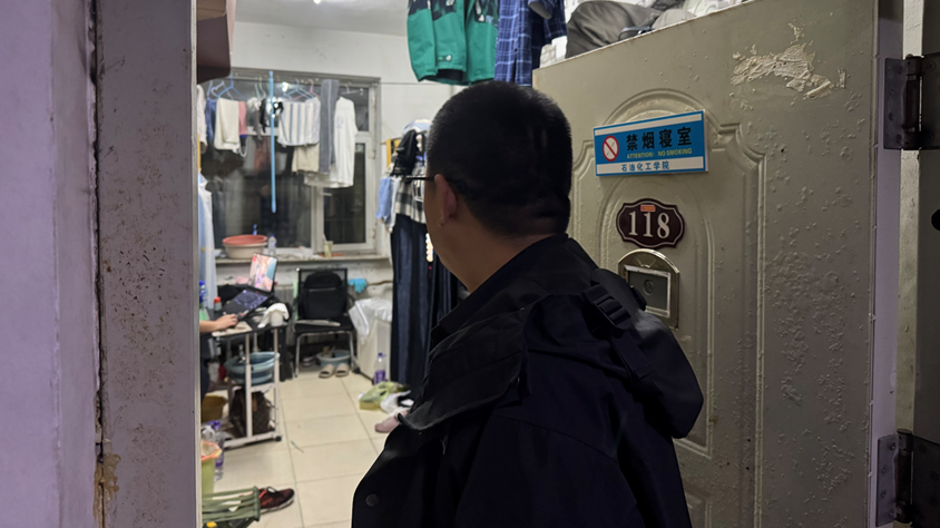 为深入了解同学们的住宿环境和思想状态,进一步加强学生教育管理工作,建设更加安全、整洁、明亮的宿舍环境。石油化工学院党委副书记张冠宇于2025年10月9日前往八号宿舍楼开展寝室走访活动。