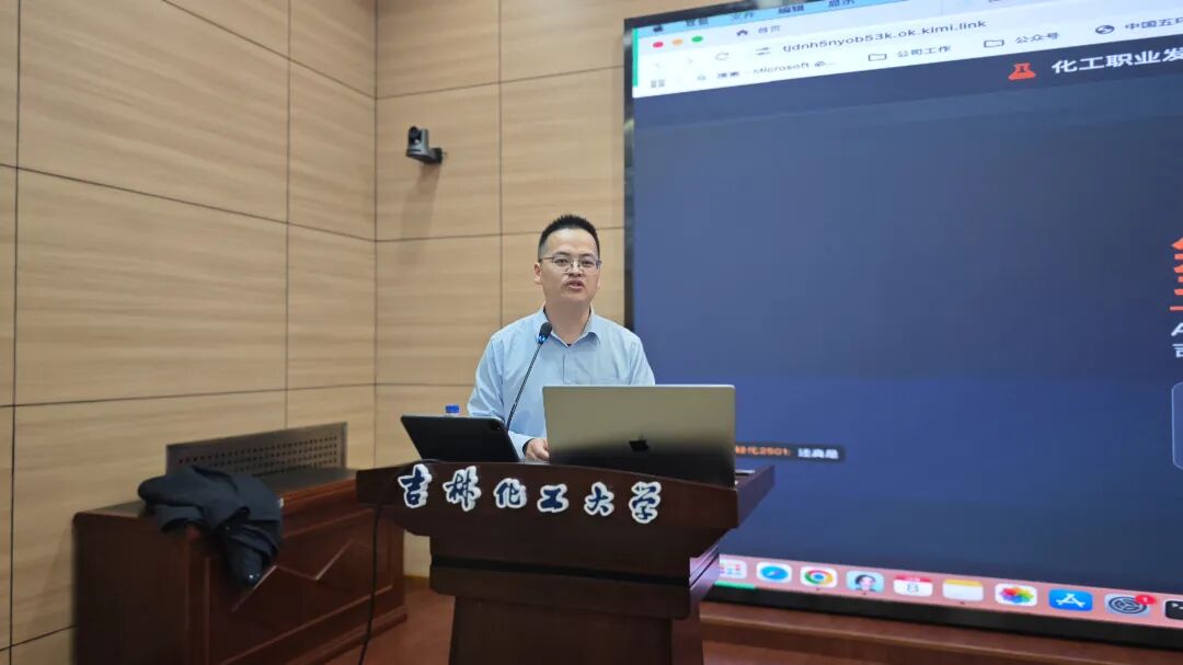 为帮助同学们在化工行业绿色化、数字化、高端化转型的关键时期,明确自身发展规划,为将来的就业发展做好充足准备,石油化工学院于2025年11月8日下午13:30在图书馆报告厅特邀廖国军工程师开展了“从工业蓝图到数字孪生:AI时代化学工程师成长路线图”主题讲座,全体化工系教师与2024级化学工程与工艺专业学生共同参加。讲座由石油化工学院副院长刘群主持。