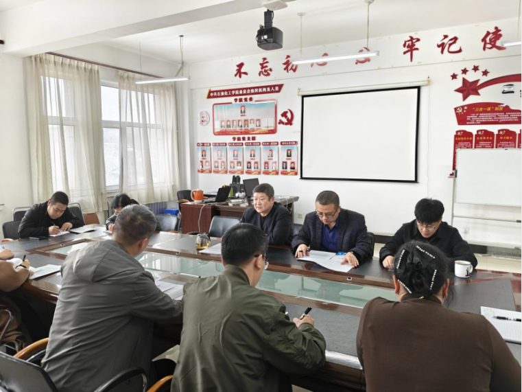 2025年4月7日,石油化工学院党委理论学习读书班在逸夫楼B511会议室隆重召开。会议由学院党委书记韩运华主持,党委委员及党支部书记出席了此次会议。