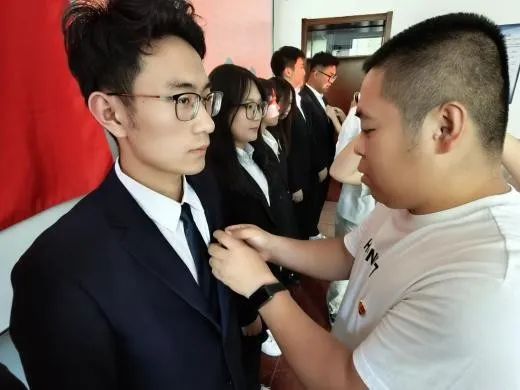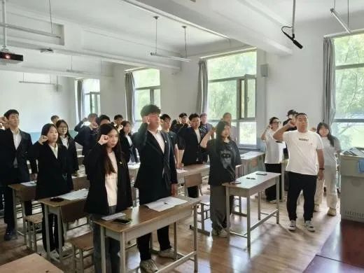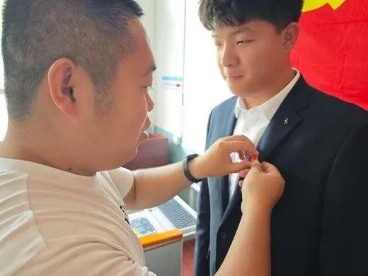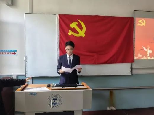 石油化工学院学生第一党支部支部书记申烨为新接收的七名预备党员佩戴党徽,并带领宣誓。在此过程中,新发展的预备党员进一步坚定了理想信念,明晰了党员责任与使命。同时,与会党员也通过重温入党程序,将以更严格的标准规范自身,充分发挥先锋模范作用。