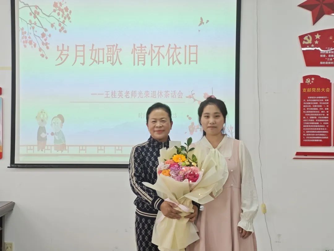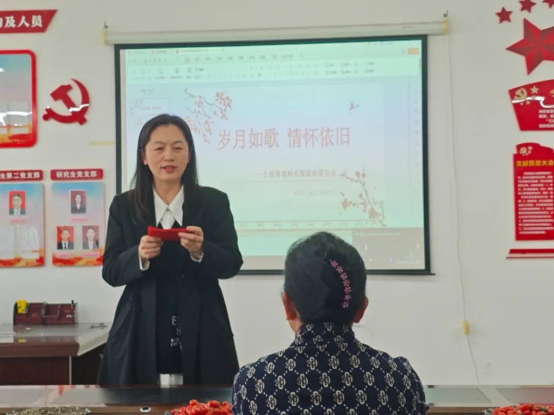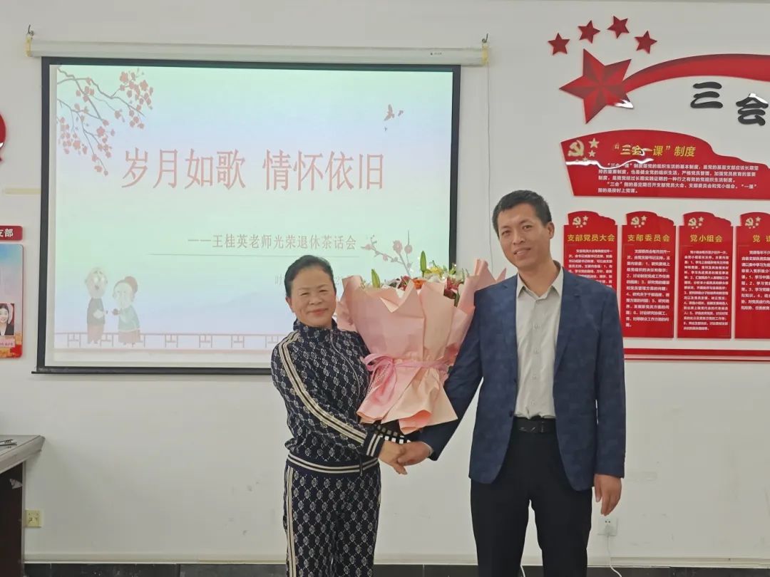 荣休仪式上播放了部分教师及学生为王老师精心准备的祝福视频。最后,由教师代表、学生代表为王老师送上鲜花。