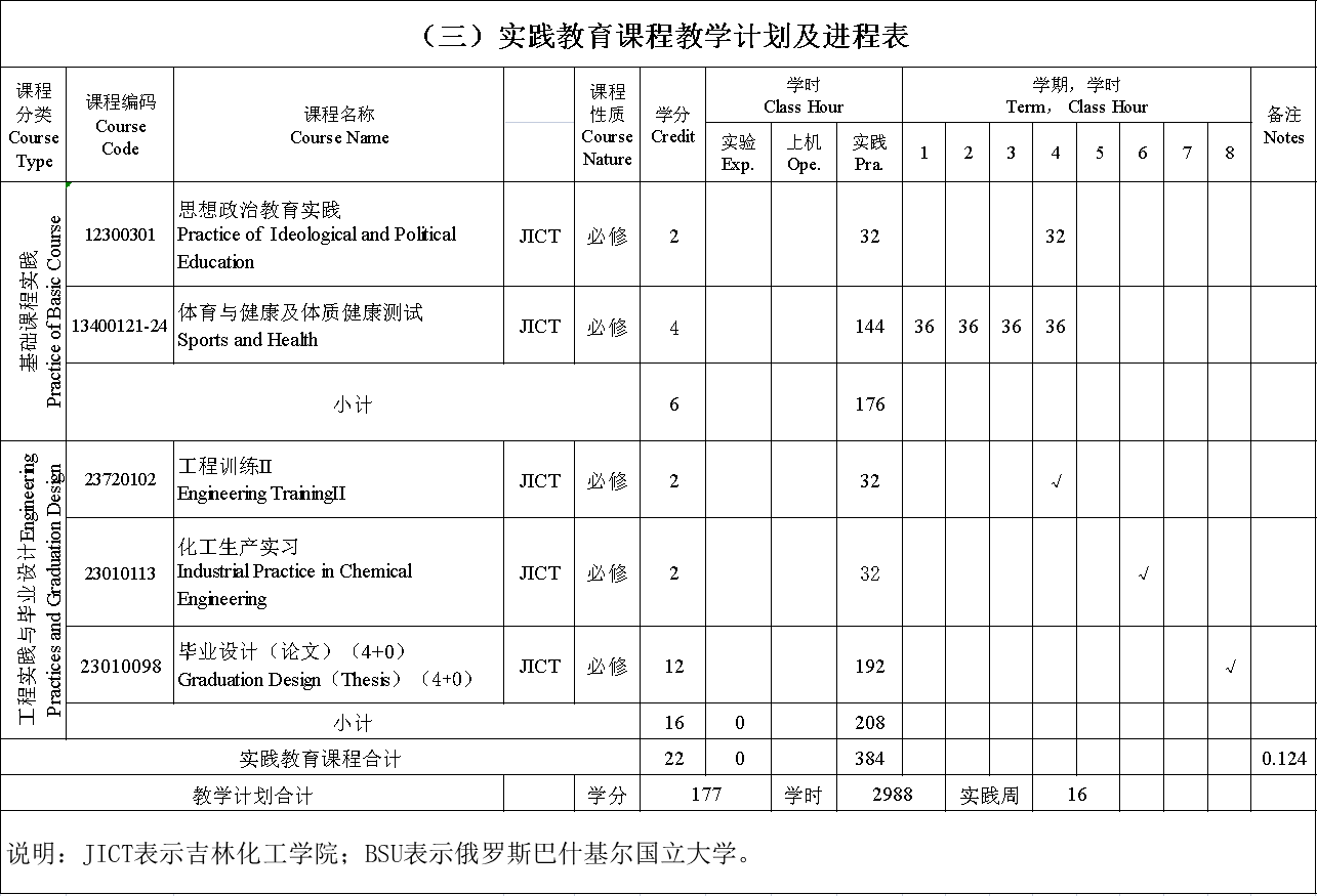 (一)主要实践性教学环节:大学物理实验、无机与分析化学实验、有机化学实验、化工原理实验、化工生产实习、胶体化学实验、工程制图实践、电工学与电子学实验、工业生态实践、化学工艺和设备实验等。