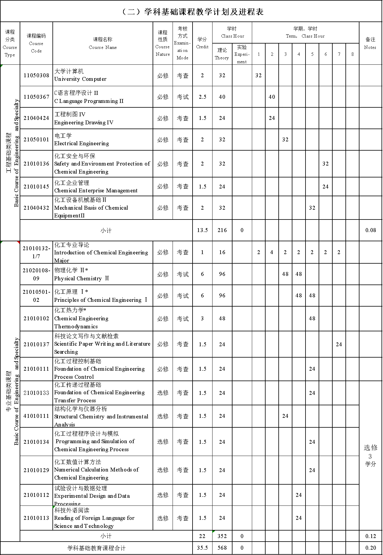 无机与分析化学、有机化学、物理化学、化工原理、化工热力学、化学反应工程、化工分离工程、化工过程系统工程、化工设计与技术经济分析、化学工艺学等。