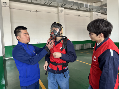 紧接着,消防员为志愿者们开展了空气呼吸机的操作与使用训练。消防员着重强调了在危险环境中,空气呼吸机对于保障生命安全的关键意义。从空气呼吸机的穿戴步骤、气密性检查到使用过程中的注意事项,每一个步骤都讲解得细致入微。志愿者们认真学习,仔细检查面罩的贴合度、气瓶的压力等,确保在紧急情况下能够可靠地使用这一“生命保障装备”。