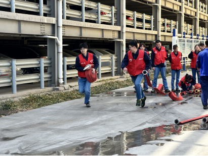 实操阶段,消防队员率先示范水带铺设、接口连接及水枪操控等标准化操作流程,志愿者们依次上阵演练。参训学员从初期操作生疏到逐步掌握动作要领,在消防员“手把手”指导纠正下,顺利完成水带快速展开、接口精准对接、水柱定向喷射等系列动作,成功对模拟火源实施扑救。