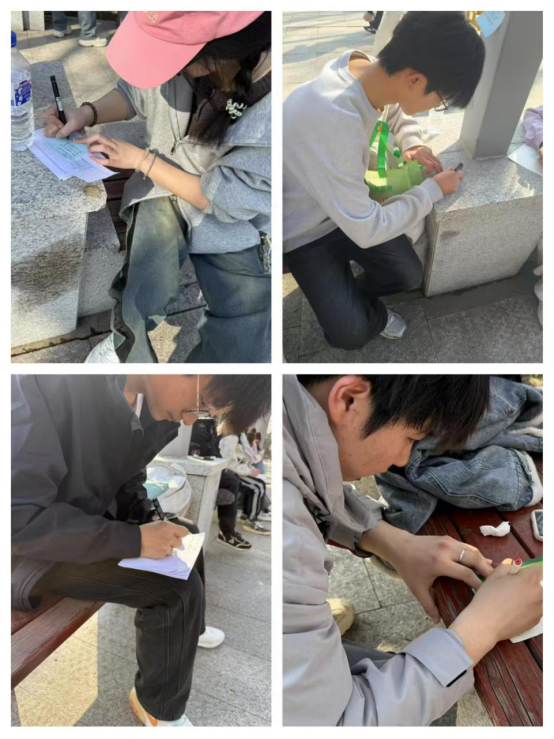 活动伊始,同学们手持纸笔齐聚,在明媚的阳光下,他们以笔为媒,将校园春日美景凝于诗行。随后在规定的创作时间里,大家沉浸诗境,捕捉自然与校园交融的美妙瞬间,让诗意在笔尖流淌。