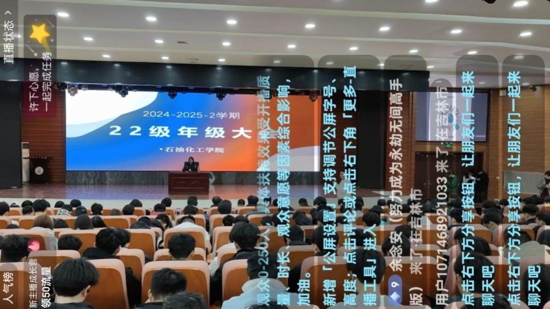 为了确保每一位同学都能参与其中,本次年级大会将同时在“化样年华”抖音账号进行直播。身处山东实习的同学们,即便无法亲临现场,也能通过直播镜头,与大家“云端相聚” ,共赴这场重要的会议。