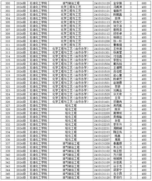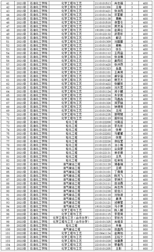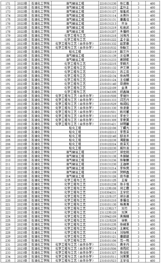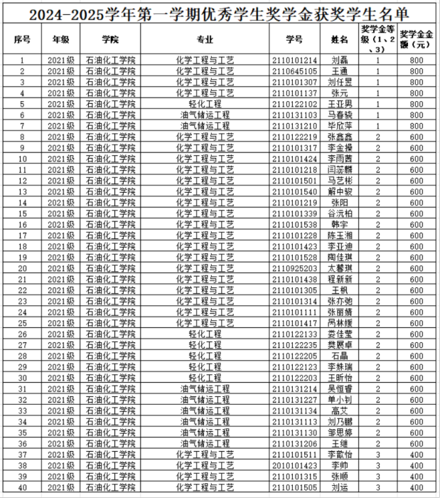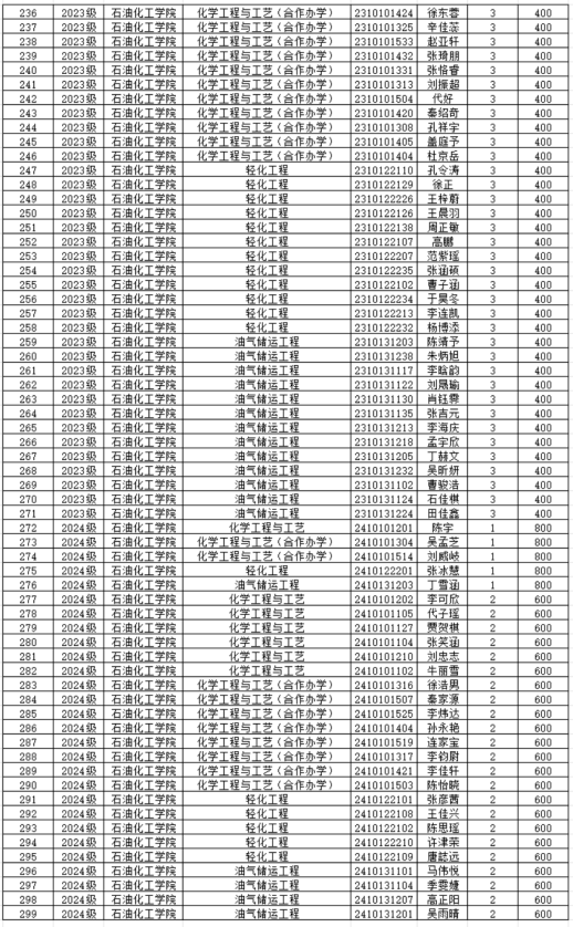 关于评定石油化工学院2024-2025学年学习奖学金的通知,根据教学院相关规定同时参照学生2024-2025学年第一学期的期末考试成绩,经学院审核评定,现将学习优秀奖学金获奖学生名单向全教学院公示。