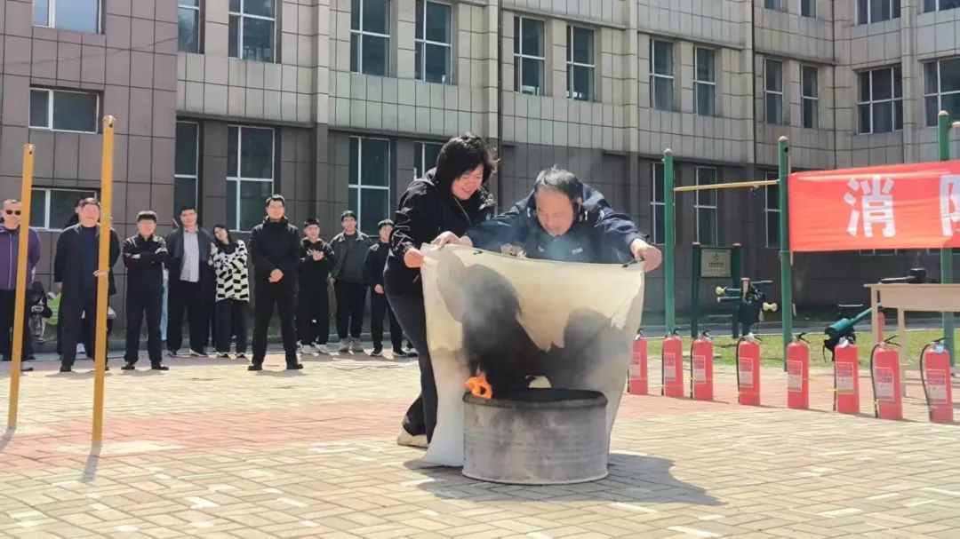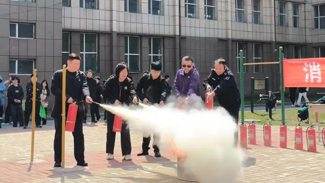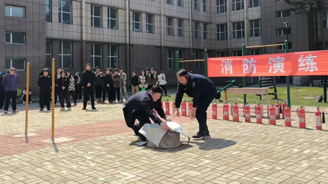 一公寓演练结束后,保卫处林洪波科长详细讲解灭火器的种类、适用范围、使用步骤和注意事项,还亲自示范操作流程,让同学们进行实际操作练习。