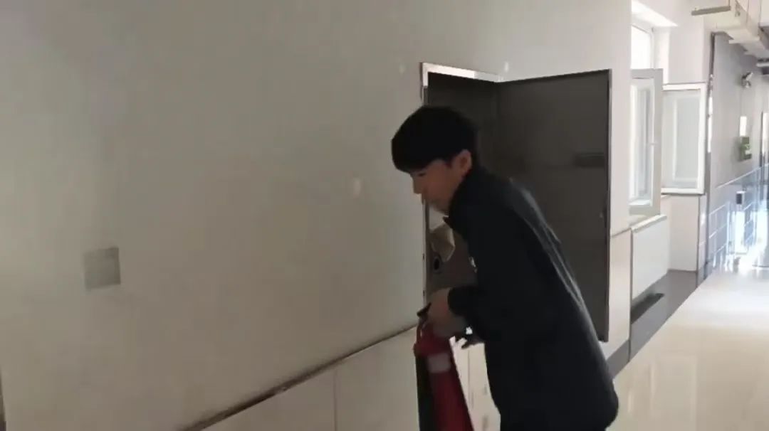 12:30,演练正式开始。学院学生邸浩洋在一公寓二楼卫生间发现火情后,迅速拨打报警电话(62185110),尝试用楼道灭火器灭火,并在第一时间报告驻楼辅导员,驻楼辅导员得知消息后,立即通知楼层长组织疏散同学,并联系门卫立即切断楼内电源,打开闸机和安全门。