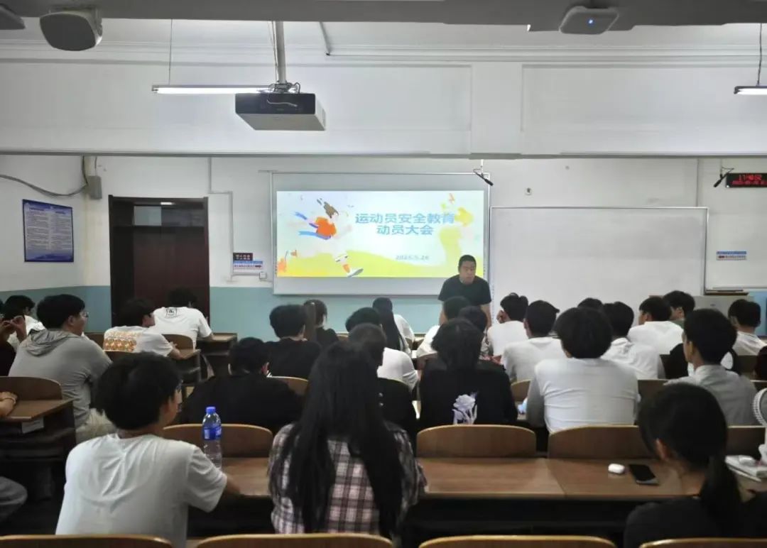 吉林化工学院第四十二届阳光体育运动大会即将拉开帷幕,为提高石化学子对体育运动的积极性,石油化工学院于2025年5月28日在一教209召开了运动员安全教育动员大会。石油化工学院团委书记申烨出席本次会议,全体运动员共同参加。