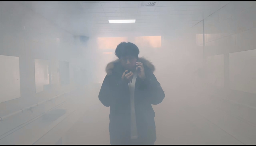 14时30分,演练正式启动:一公寓四楼卫生间突发“火情”,学生徐文浩第一时间发现险情,立即拨打校园报警电话62185110向保卫处报告起火位置、燃烧情况及人员状态,并取用楼道灭火器尝试初期扑救,在火势得到初步控制后迅速下楼联动驻楼辅导员与门卫。