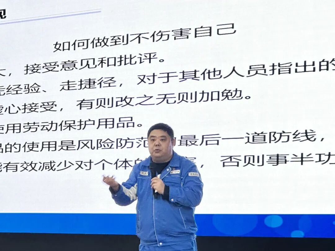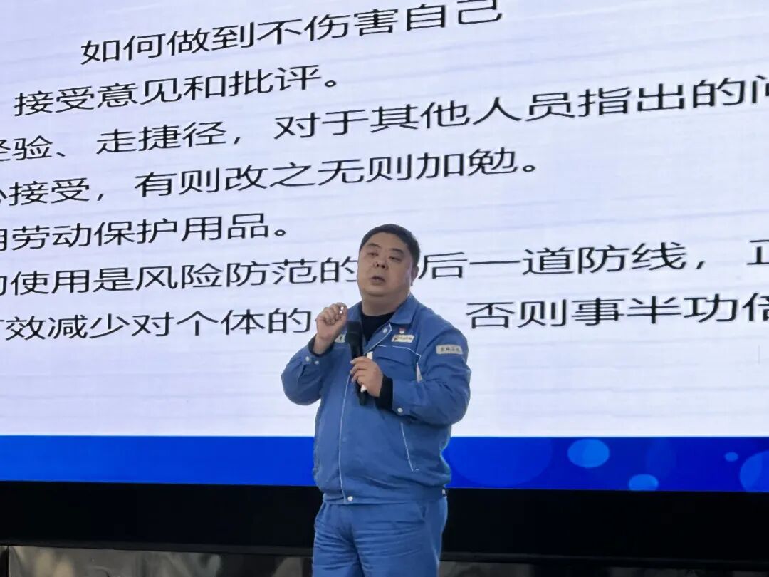 培训中,袁春野科长围绕化工生产实习安全核心要求,重点讲解了实习过程中“四不伤害”原则的落实要求,即不伤害自己、不伤害他人、不被他人伤害、保护他人不受伤害。他结合化工行业典型事故案例与一线实操场景,从规范操作流程、正确佩戴防护用品、辨识现场安全风险、遵守厂区安全纪律、及时制止不安全行为等方面进行细致讲解,引导同学们将安全意识内化于心、外化于行,切实掌握岗位安全技能,为后续顺利开展生产实习筑牢安全防线。