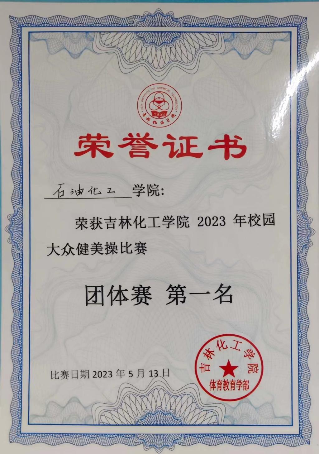 石油化工学院荣获吉林化工大学2023年校园大众健美操比赛团体赛第一名