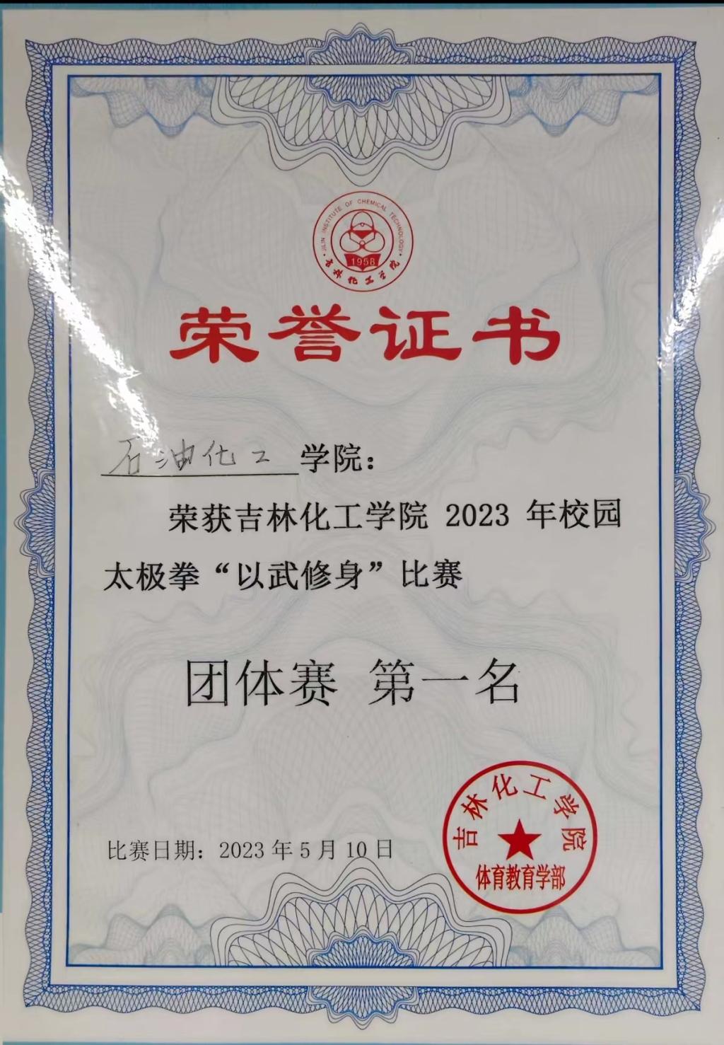 石油化工学院荣获吉林化工大学2023年校园太极拳“以武修身”比赛团体赛第一名